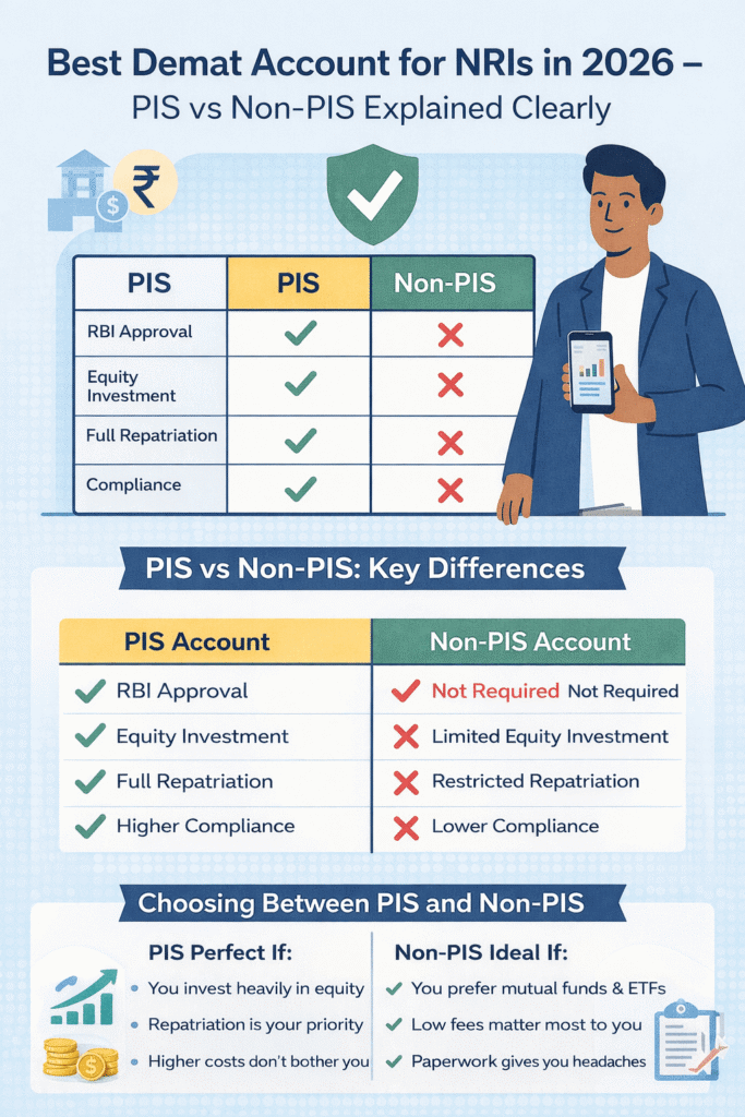 In this detailed guide, I’ll break down PIS vs Non-PIS in simple language, share real-world examples, and help you confidently choose the best demat account for NRIs in 2026—without headaches later.